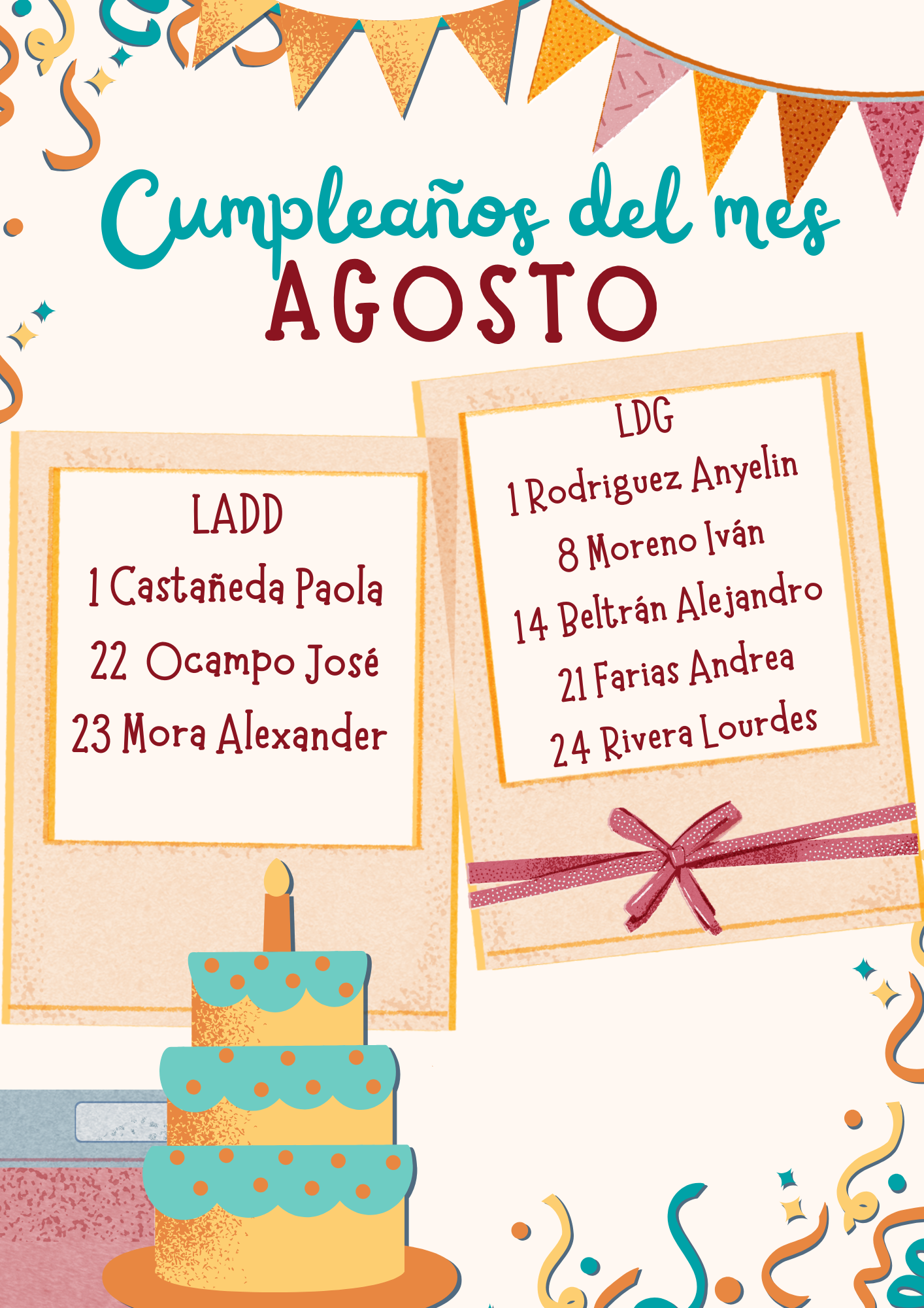Agosto ha llegado, y con él, celebramos a los estudiantes que cumplen años durante este mes tan especial en las licenciaturas en Diseño Gráfico y Animación y Diseño Digital. Es el momento perfecto para reconocer no solo su talento, sino también su energía, personalidad y pasión por el diseño y la animación.