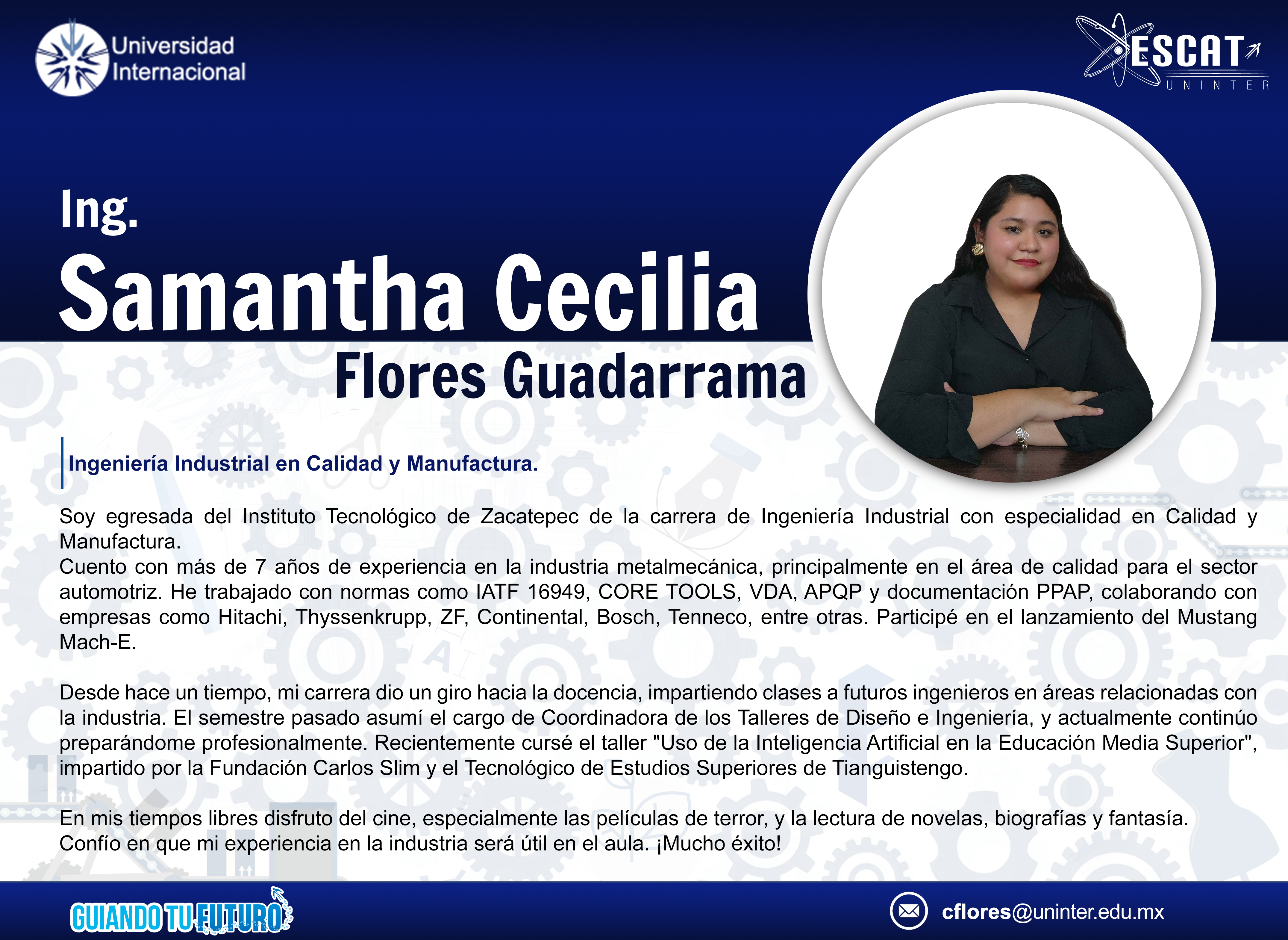 Ciencias e IngenieríaConoce un poco más a los profesores que conforman las Academias de Ciencias e Ingeniería:Mtro. Arturo Daniel Espinosa PedrozaMtro. Carlos Díaz GómezDr. Fernando Enrique Hidalgo HernándezLic. José Alfredo Soto UruetaDra. Luz María Sánchez RiveraMtra. Mariana Martínez SilvaMtra. Mary Carmen Hernández GaticaPaolo Dario González DiegoIng. Samantha Cecilia Flores GuadarramaComparte esto: Haz clic para compartir en Facebook (Se abre en una ventana nueva) Facebook Click to share on X (Se abre en una ventana nueva) X