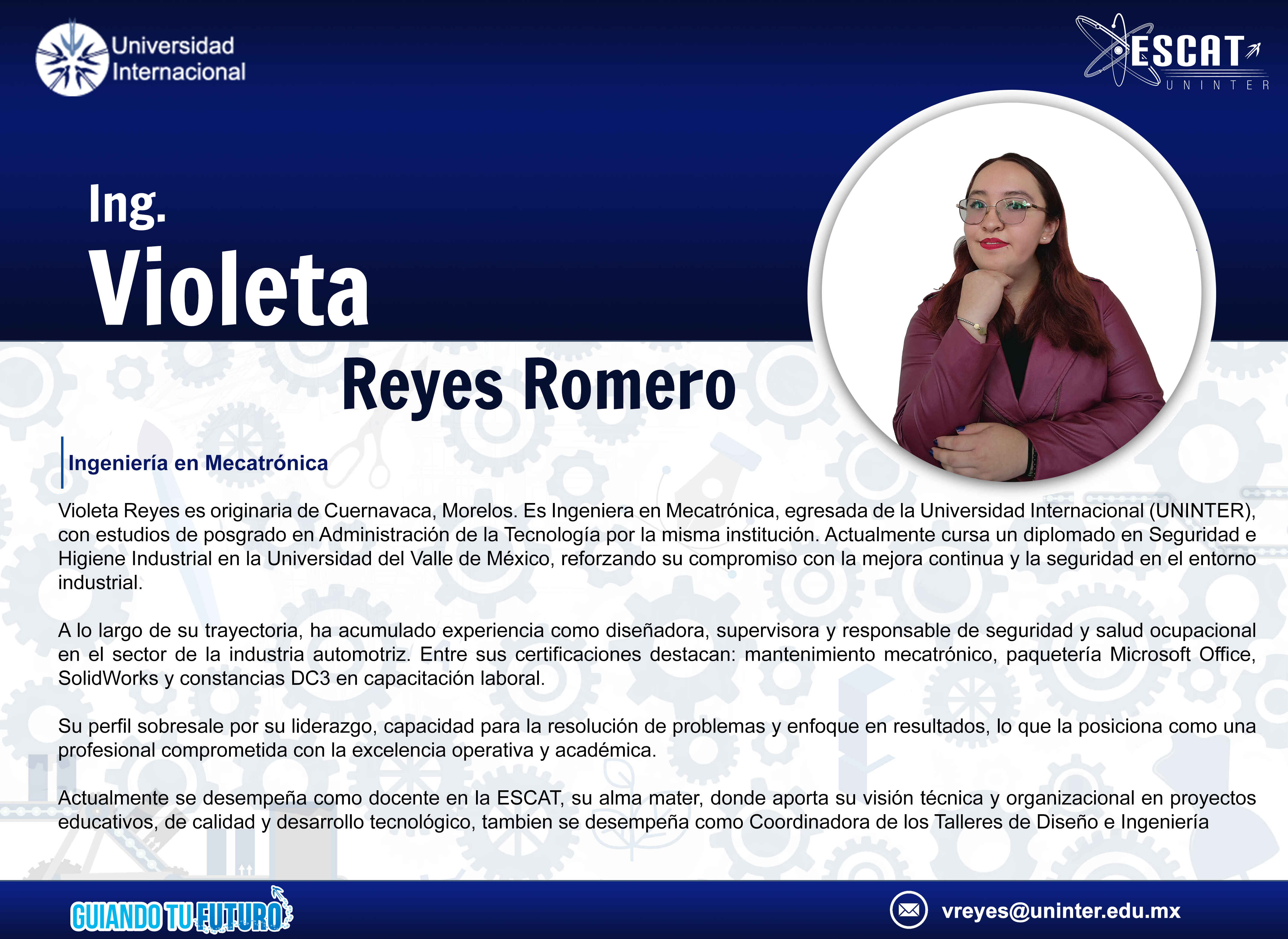 Ing. Violeta Reyes Romero / Coordinadora de talleres de Diseño e Ingeniería