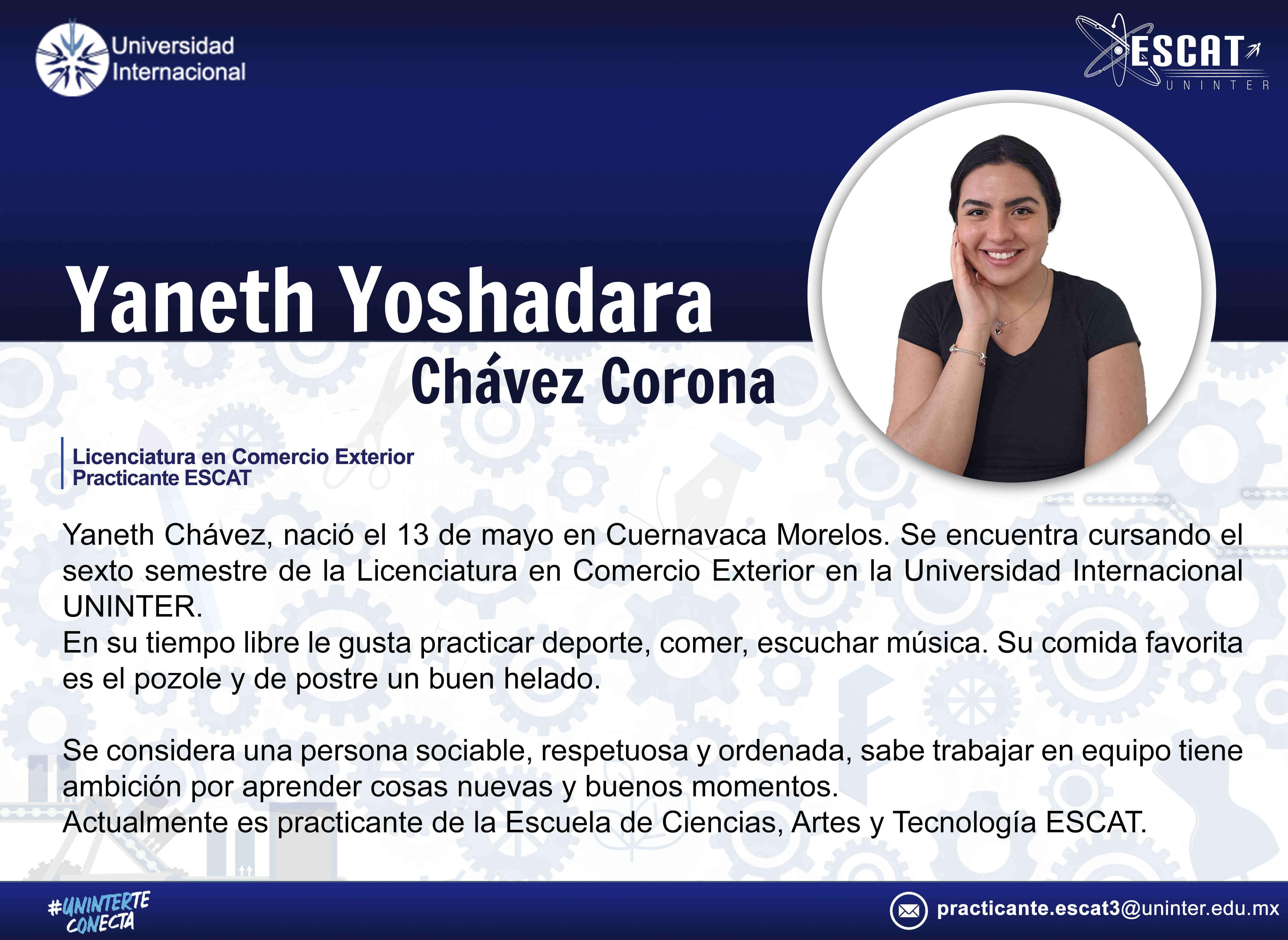 Yaneth Yoshadara Chávez Corona / Asistente en el Área de Diseños de Modas.