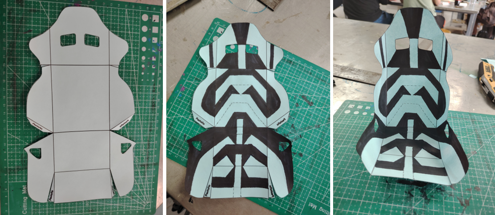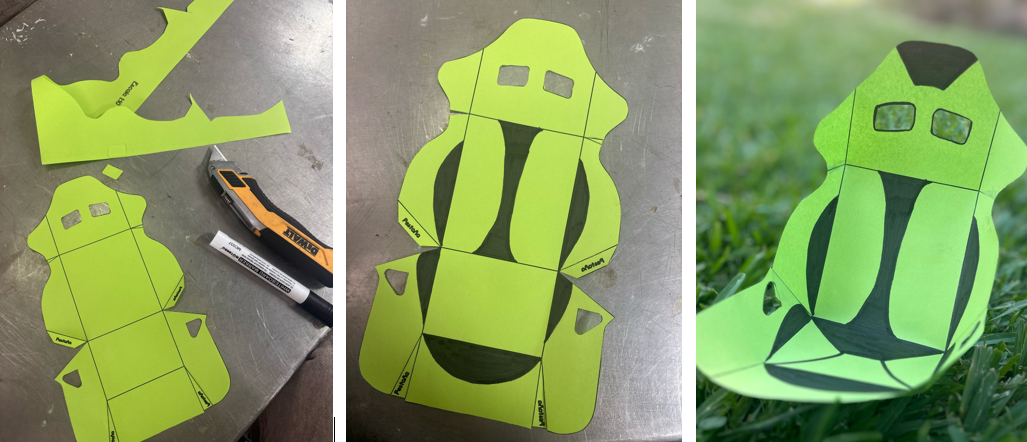 El proyecto comenzó con la plantilla base de un asiento, en la que debíamos cortar, doblar y ensamblar cada parte cuidadosamente. Para darle un toque personal, utilizamos diferentes colores y estilos en nuestros diseños, asegurándonos de que cada maqueta reflejara una identidad única.