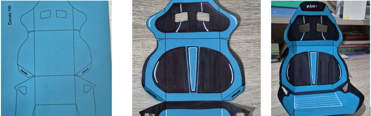 - Armado Final: Plegamos y pegamos cada pieza para dar forma a la estructura tridimensional del asiento.