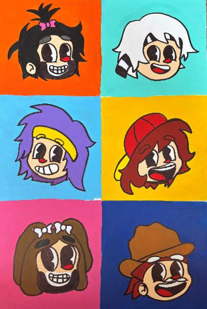 El ejercicio consistió en la creación de seis recuadros donde cada estudiante reinterpretó a sus personajes seleccionados desde una perspectiva creativa y personal. El propósito principal de esta actividad fue fomentar la exploración del color, la composición y el estilo pictórico, permitiendo que los alumnos desarrollaran su propia voz artística.