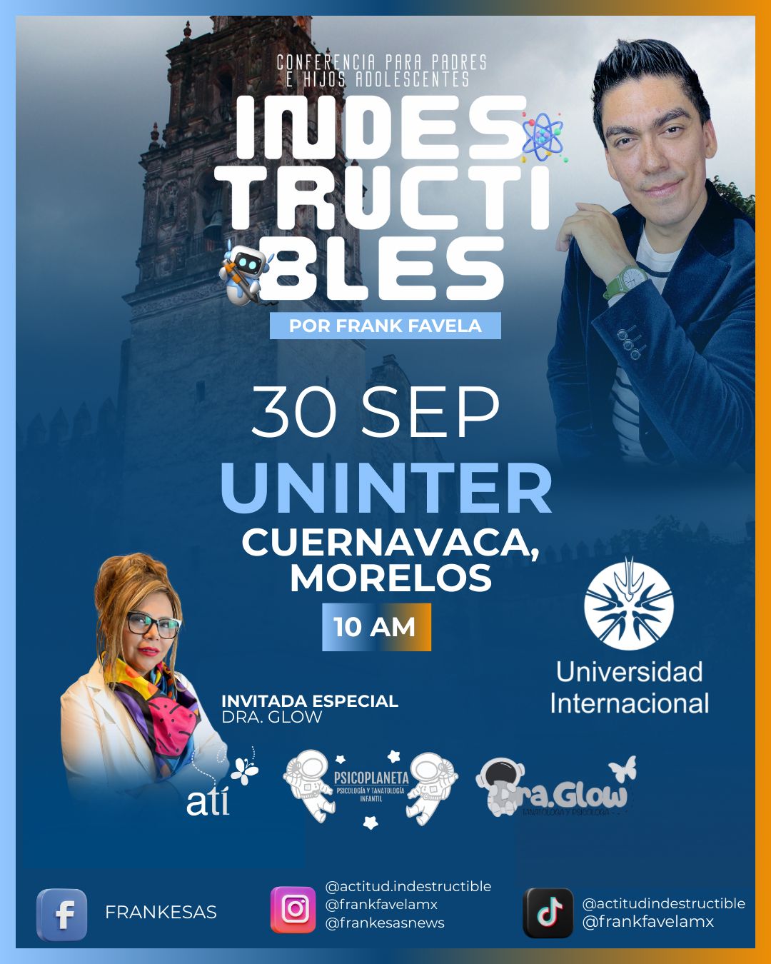 Indestructibles es la conferencia que transforma los retos de la adolescencia en oportunidades para crecer en familia. Con la guía de Frank Favela, descubre cómo fortalecer el diálogo, la empatía y los lazos que hacen a tu hogar más fuerte. 👨👩👧👦✨