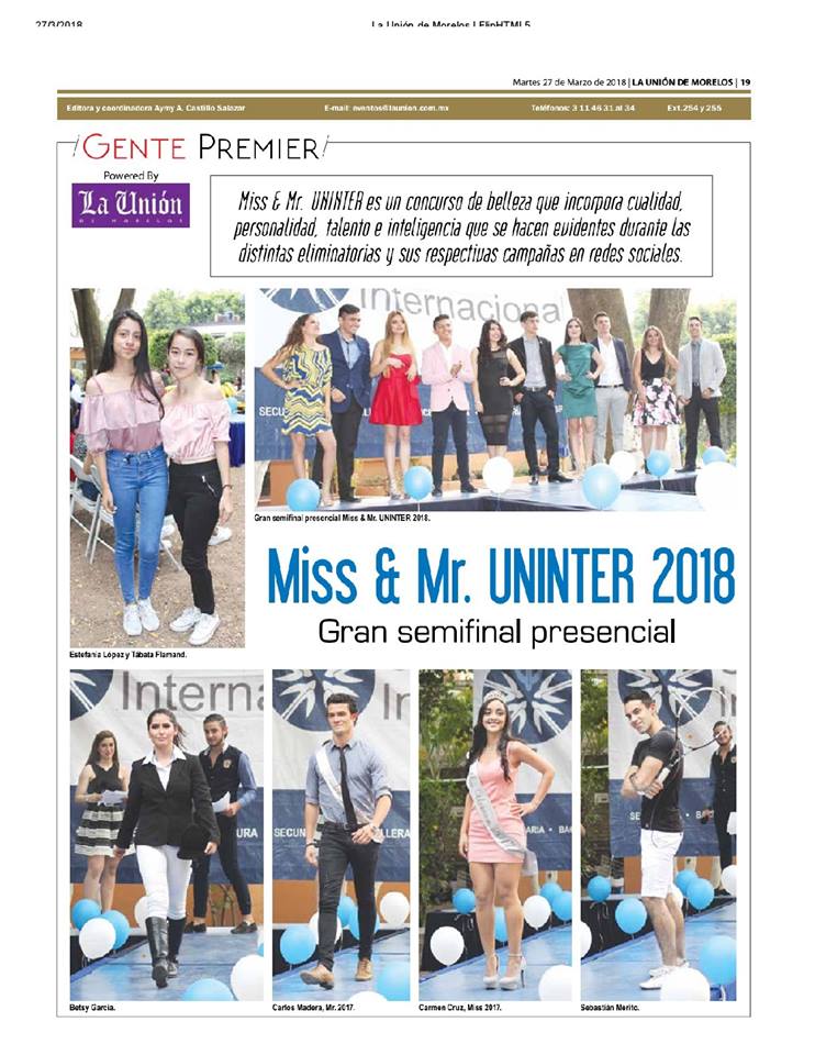 NO TE PUEDES PERDER LA SEMIFINAL DE MISS & MR UNINTER Y APOYA A TU FAVORITO!!