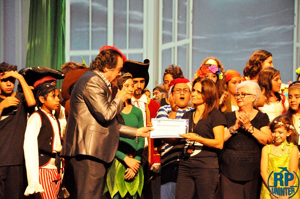 - Entrega de reconocimiento a la Direccion de la compañia de Teatro Uninter, por parte del Rector de la Universidad Internacional.