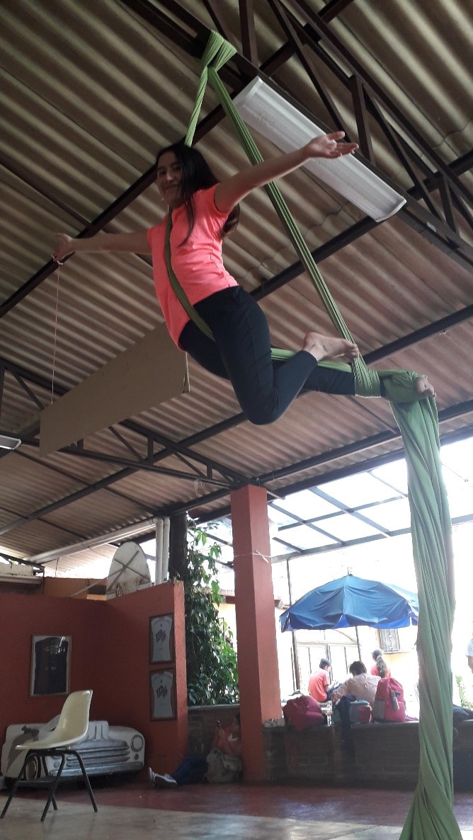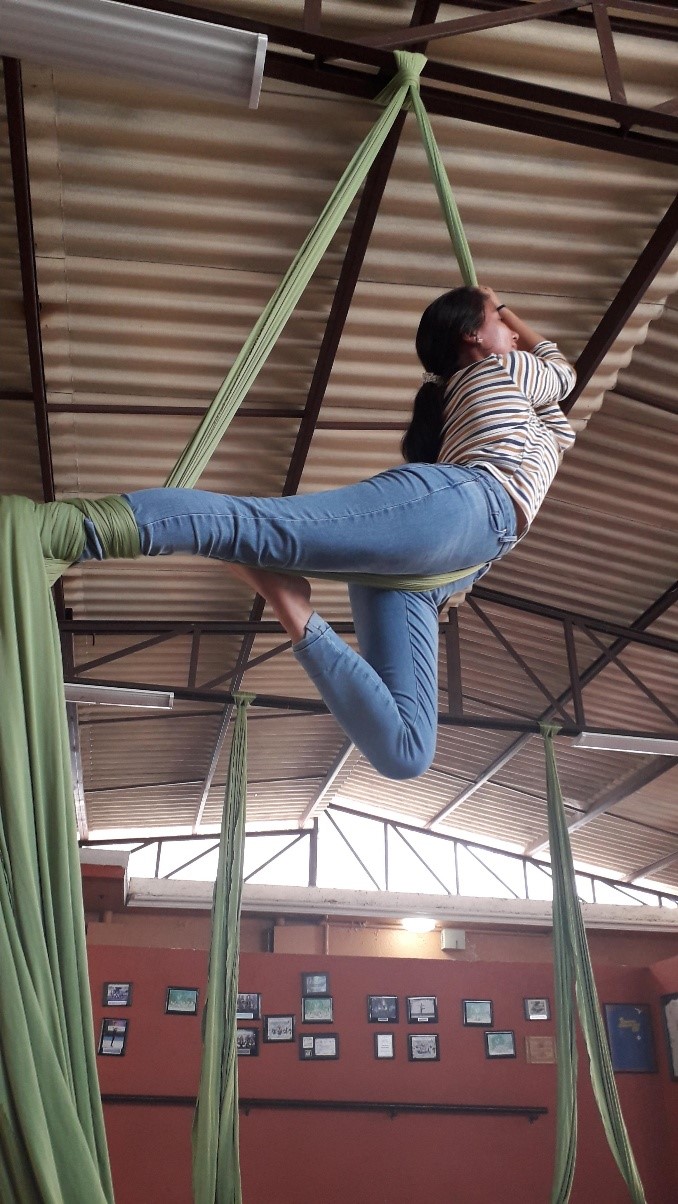 La alumna y tallerista Dalia Leilami esta comprometida con la clase de danza aérea y cuenta con 31 alumnos inscritos con un horario de 2:30 a 4:00 los martes y viernes.