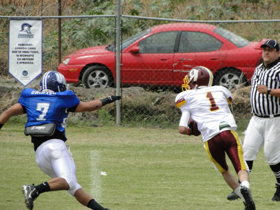 De nuevo en el 2do cuarto UNINTER vuelve a pegar, y por medio de su ataque terrestre hace un poco más amplia su ventaja, con una toss de 5 yardas, de su habilidoso HB #20 Luis “Pollo” Flores Castañeda, que pone los cartones 14-0.