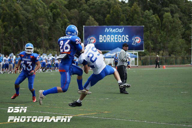 Pero poco le duraría el gusto del cero en el marcador a la visita, ya que con certeros pases del Qb Erick Juárez #14, los Borregos se fueron acercando a la zona prometida, y timbraron en la anotación con un pase de 40 yardas de Juarez#14, a su WR#87 Daniel Flores y así abrir el marcador 7-0.