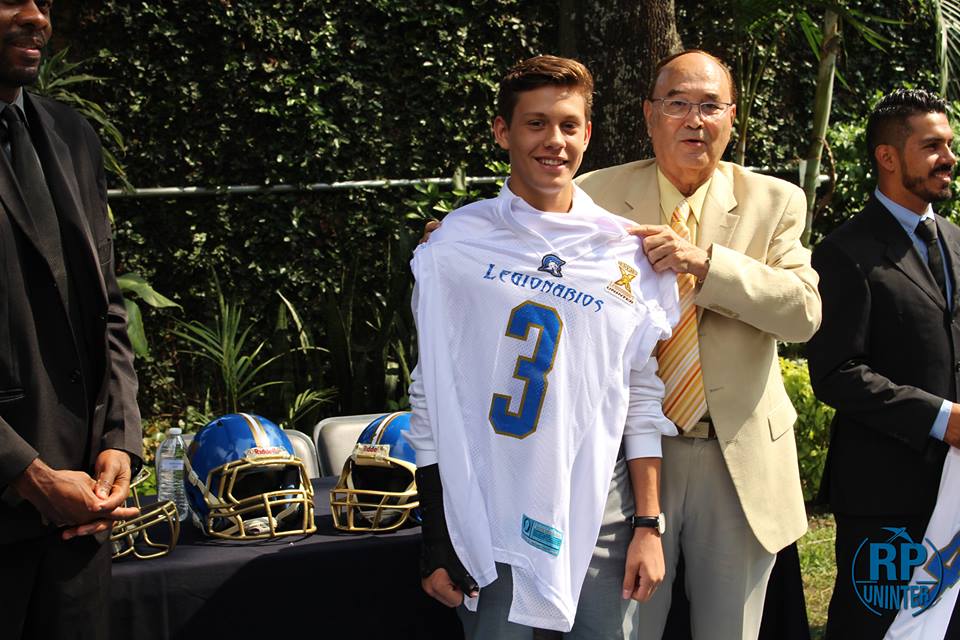 El pasado viernes 23 de junio las categorías infantil del programa de futbol americano Legionarios UNINTER recibieron sus uniformes con los que jugaran en esta temporada 2017 OFAMO donde en esta ocasión los internacionales saldrán con fundas blancas y jersey blanco con vivos azul – oro , con casco azul y dorado.